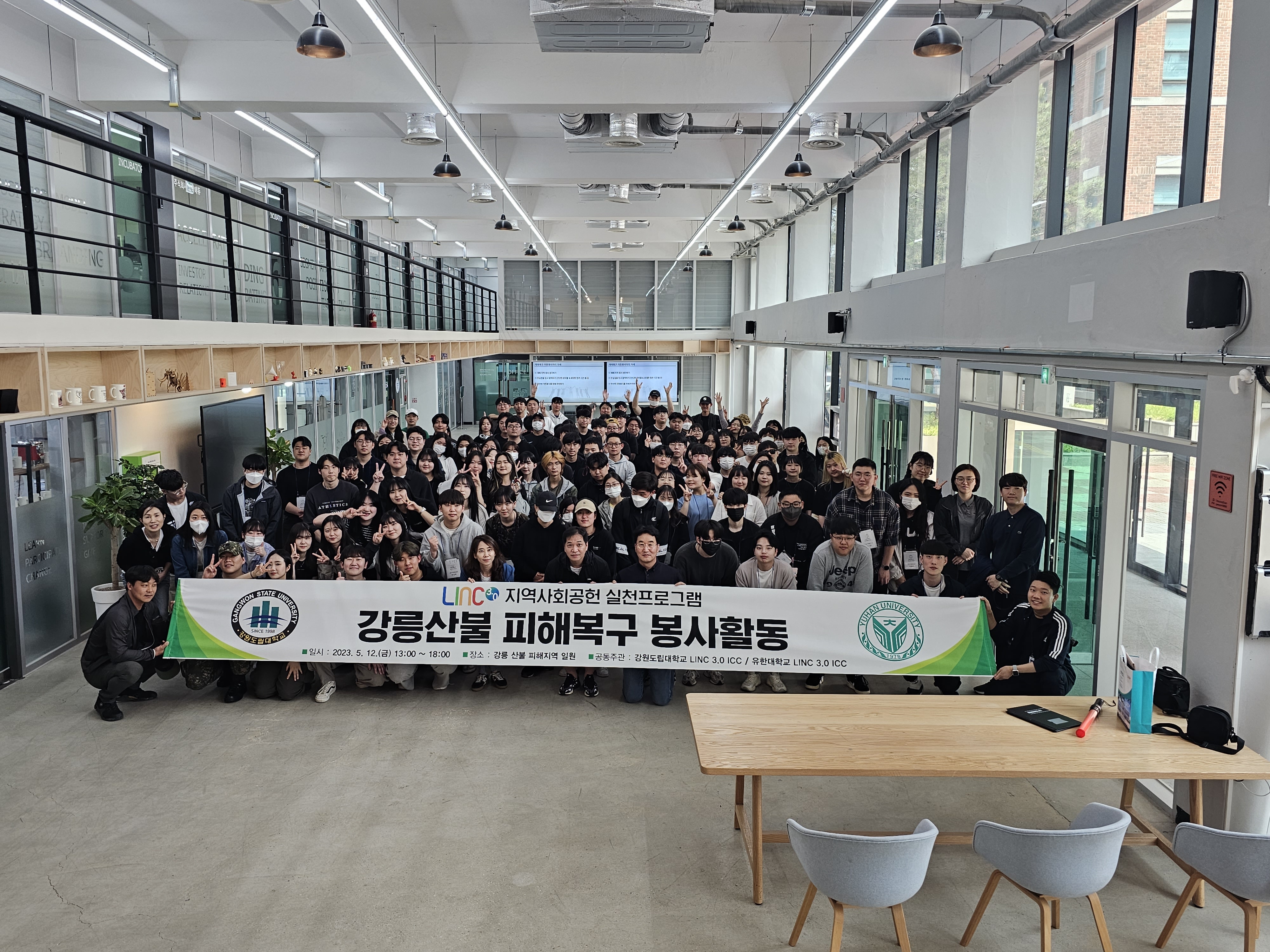 강원도립대학교(총장 김광래) LINC 3.0 사업단 에코방재 기업협업센터(ICC)는 5월 12일(금), 강릉산불로 인해 어려움을 겪고 있는 지역의 피해 복구에 보탬이 되기 위한 봉사활동을 진행하였다.